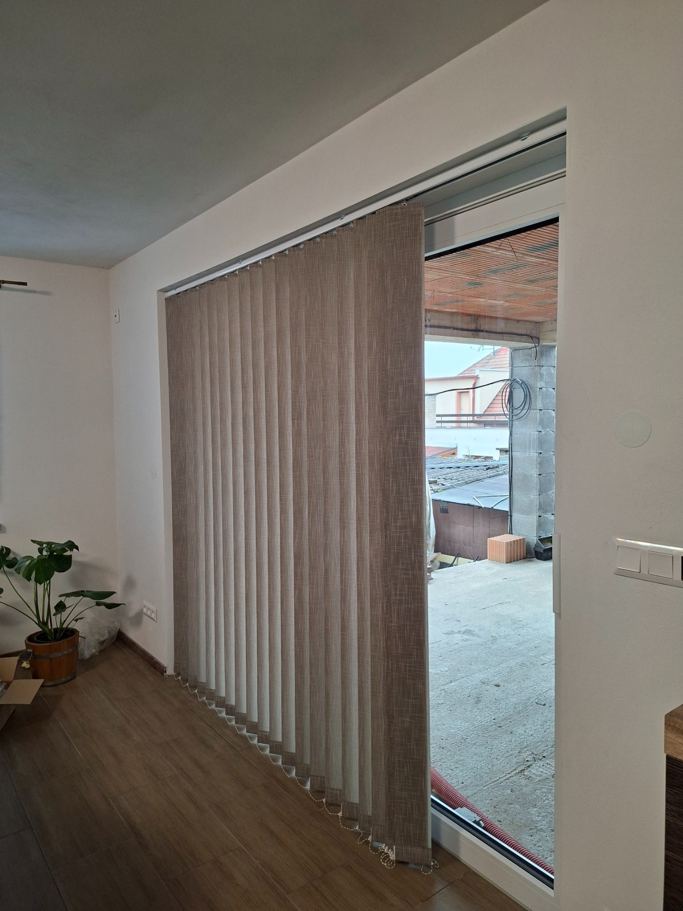 Montáž vertikálnych žalúzií. Zakrytie priestoru pred HST portalom.